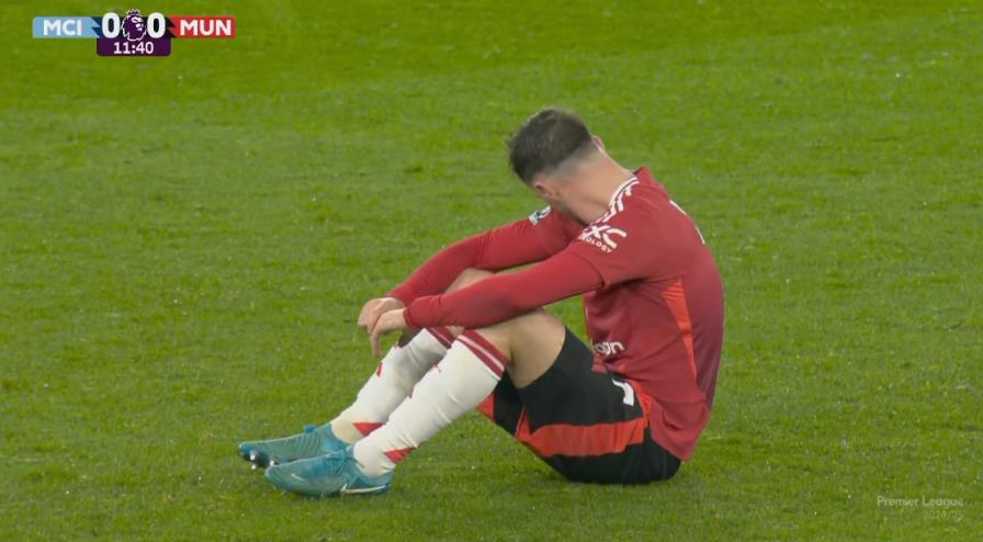 曼聯(lián)2-1曼城的比賽中,芒特首發(fā)出戰(zhàn),第13分鐘傷退。